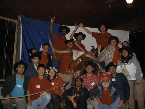 Computer Architecture students and faculty surround the poor bull which was pretending to be Bevo (UT's Mascot).
